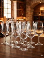 embalagem com 12 taças, ideal para mesas de degustação estruturadas e uso recorrente.
