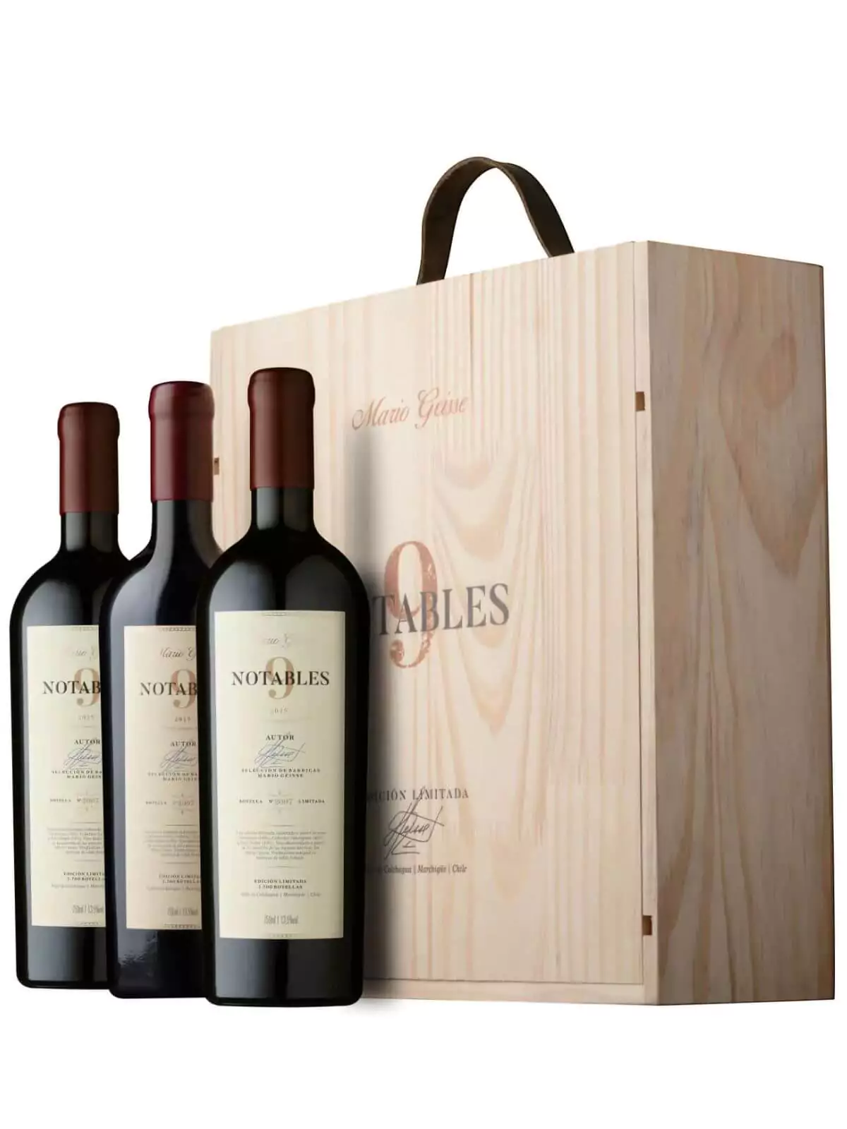 Mario Geisse 9 Notables – Caixa de Madeira com 3 Garrafas